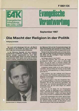 Dr. Wolfgang Schäuble, Bundesminister Die Macht der Religion in der Politik